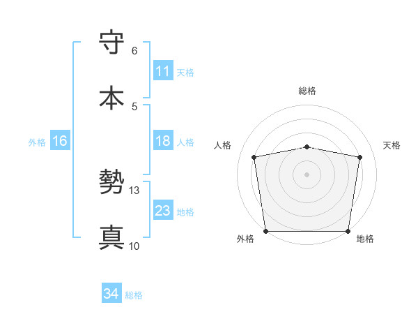 守本 勢真さんの総格は34画の2点!
