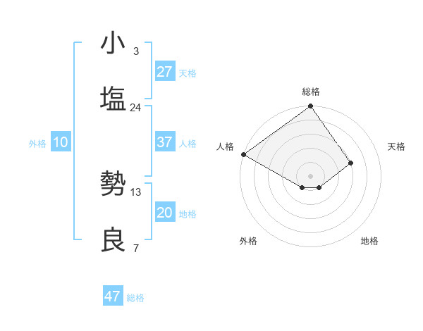 小塩 勢良さんの総格は47画の5点!