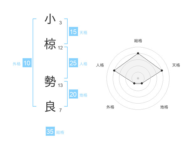小椋 勢良さんを姓名の画数から五運を鑑定