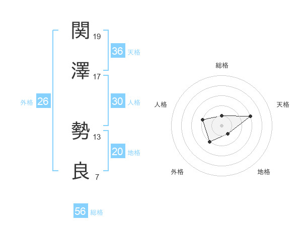 関澤 勢良さんの総格は56画の1点!