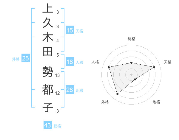 上久木田 勢都子さんの天格は15画の4点!