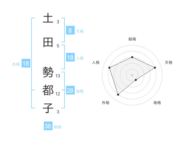 土田 勢都子さんを姓名の画数から五運を鑑定