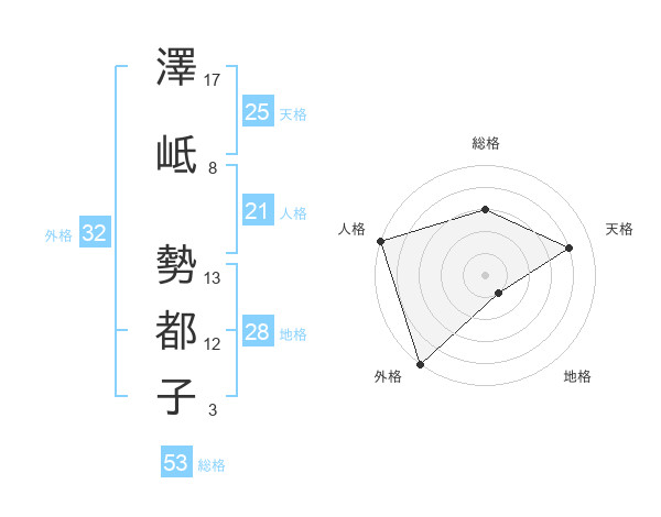 澤岻 勢都子さんを姓名の画数から五運を鑑定