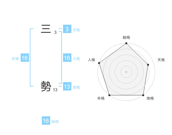 三 勢さんの外格は16画の5点!