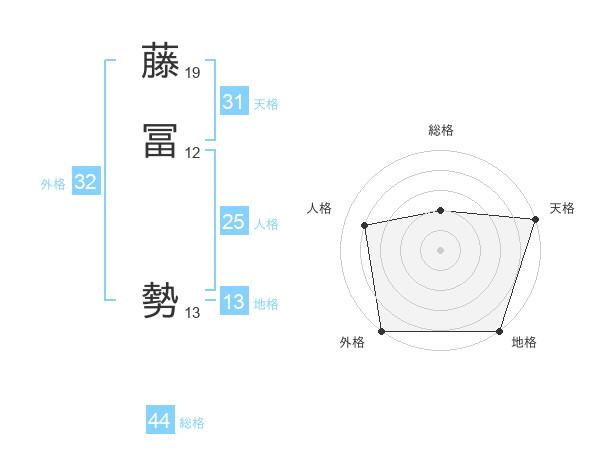 藤冨 勢さんの天格は31画の5点!