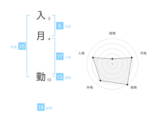 入月 勤さんの地格は13画の5点!