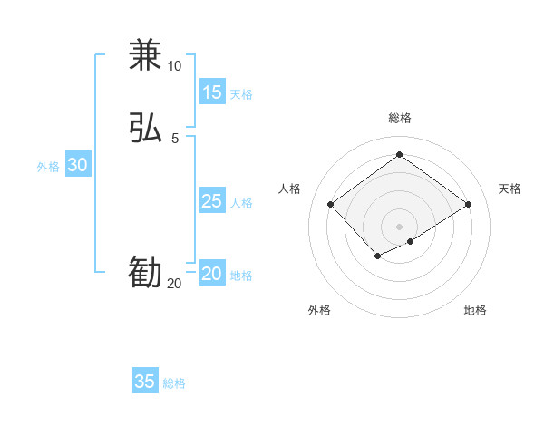兼弘 勧さんを姓名の画数から五運を鑑定