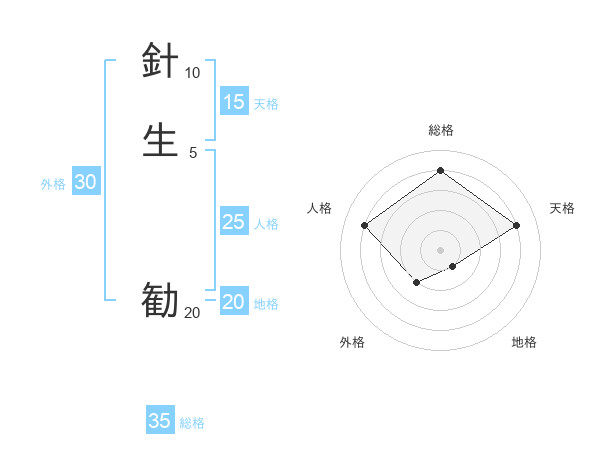 針生 勧さんの総格は35画の4点!