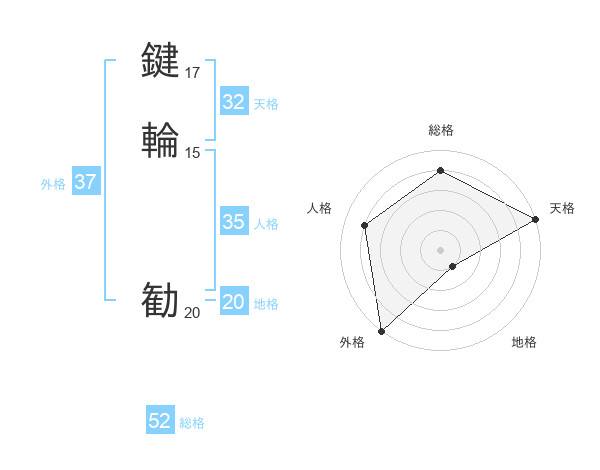 鍵輪 勧さんを姓名の画数から五運を鑑定