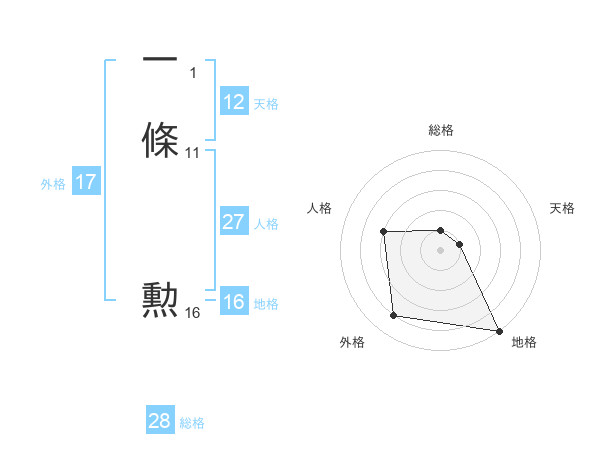 一條 勲さんの外格は17画の4点!