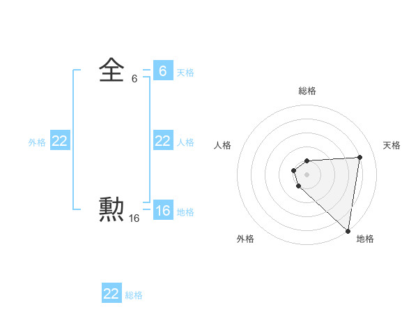 全 勲さんの総格は22画の1点!