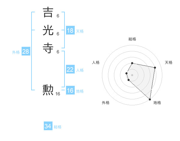 吉光寺 勲さんの総格は34画の2点!