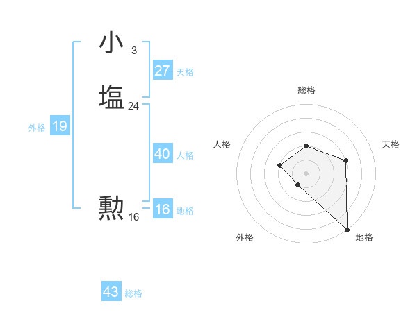 小塩 勲さんの総格は43画の2点!