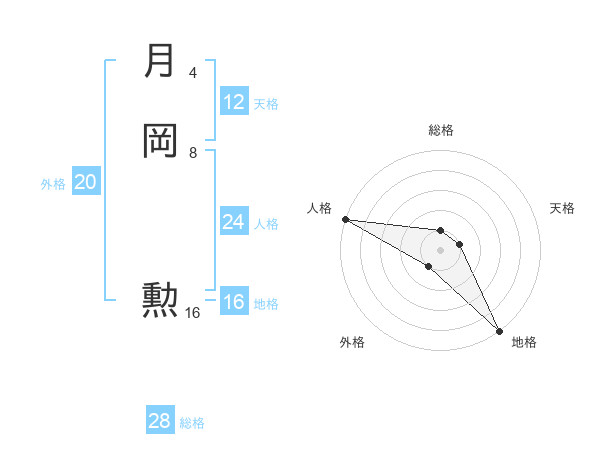 月岡 勲さんの総格は28画の1点!