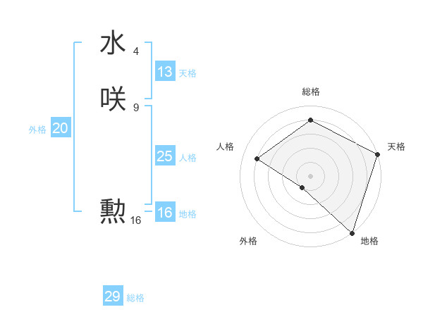 水咲 勲さんの総格は29画の4点!