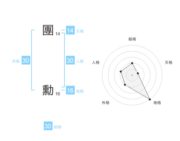 團 勳さんの天格は14画の1点!