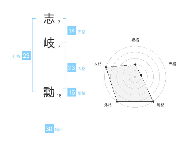 志岐 勳さんの天格は14画の1点!
