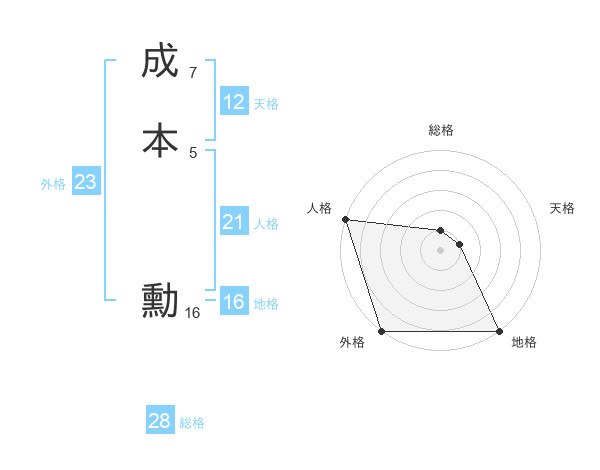 成本 勳さんの総格は28画の1点!