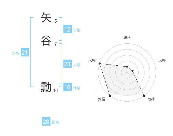 矢谷 勳さんの外格は21画の5点!
