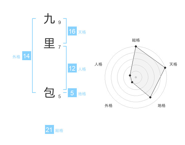九里 包さんの総格は21画の5点!