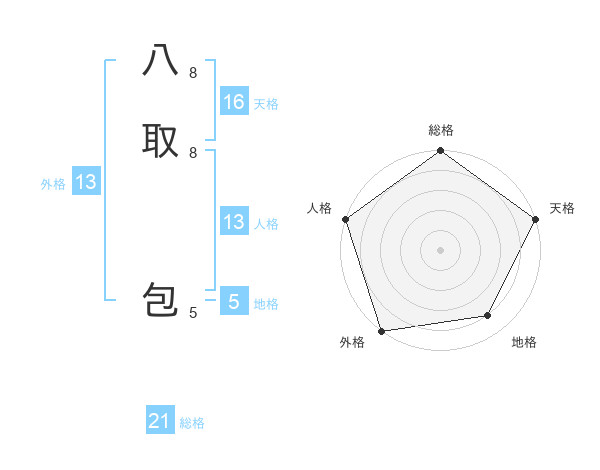 八取 包さんの外格は13画の5点!