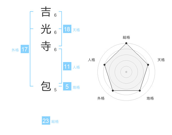吉光寺 包さんの総格は23画の5点!