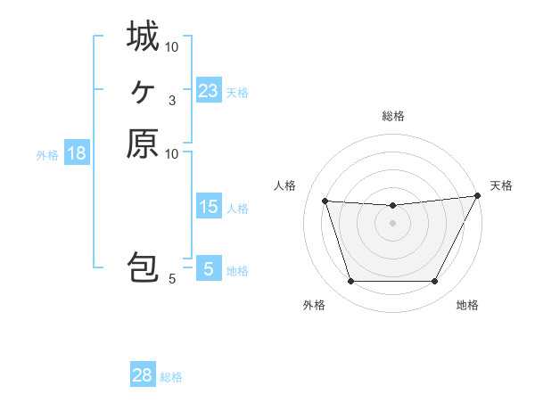 城ヶ原 包さんを姓名の画数から五運を鑑定