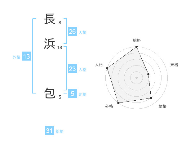 長浜 包さんの外格は13画の5点!