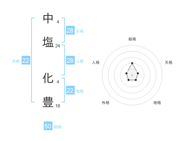 中塩 化豊さんの総格は50画の2点!