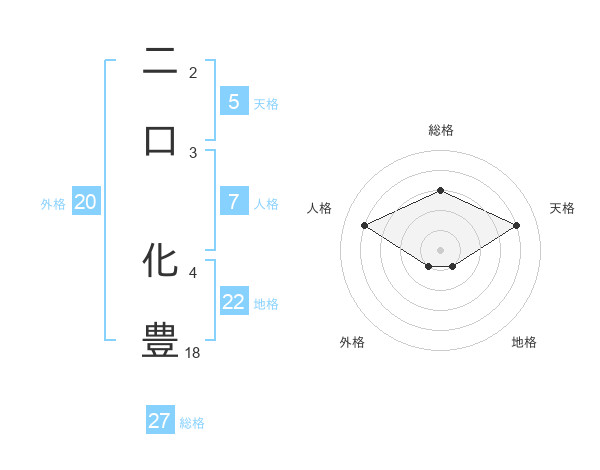 二口 化豊さんの総格は27画の3点!