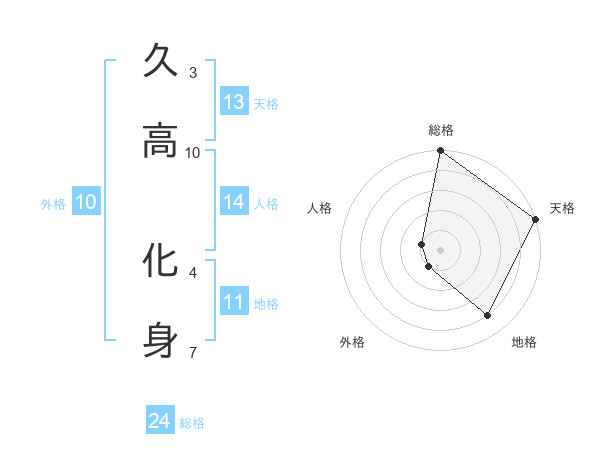 久高 化身さんの総格は24画の5点!