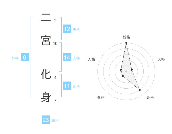 二宮 化身さんの総格は23画の5点!