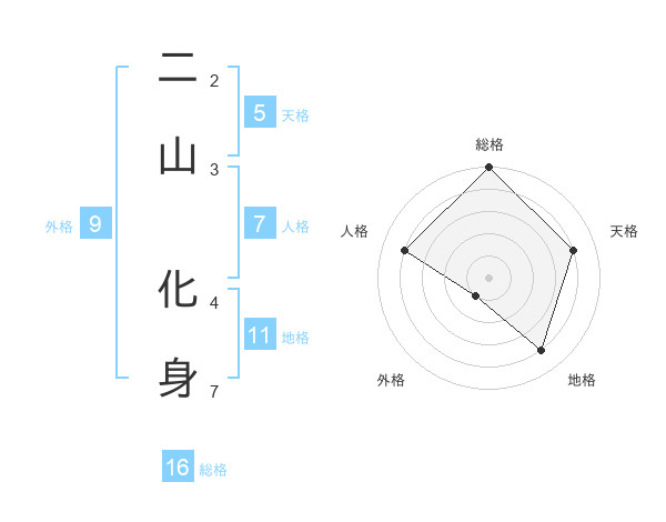 二山 化身さんの総格は16画の5点!