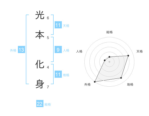 光本 化身さんの外格は13画の5点!