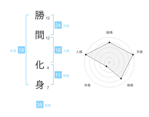 勝間 化身さんの総格は35画の4点!