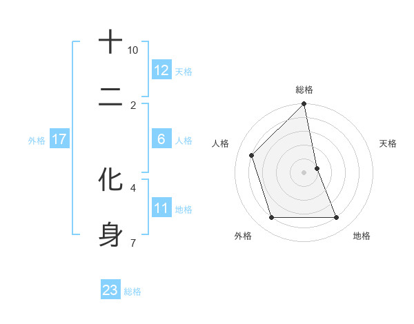 十二 化身さんの総格は23画の5点!