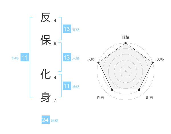 反保 化身さんの天格は13画の5点!