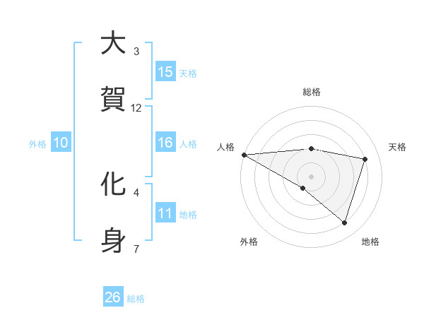 大賀 化身さんの総格は26画の2点!