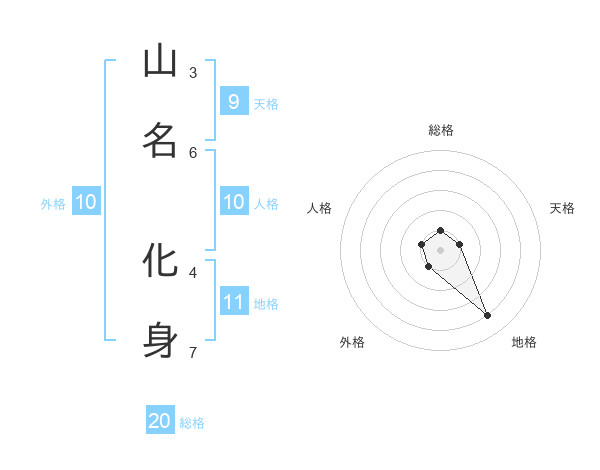 山名 化身さんの総格は20画の1点!