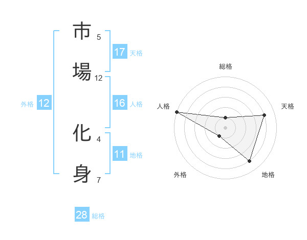 市場 化身さんの総格は28画の1点!