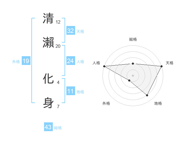清瀨 化身さんを姓名の画数から五運を鑑定