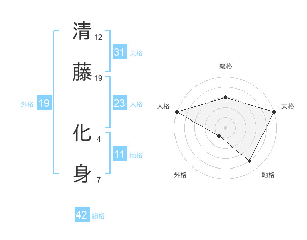 清藤 化身さんの天格は31画の5点!