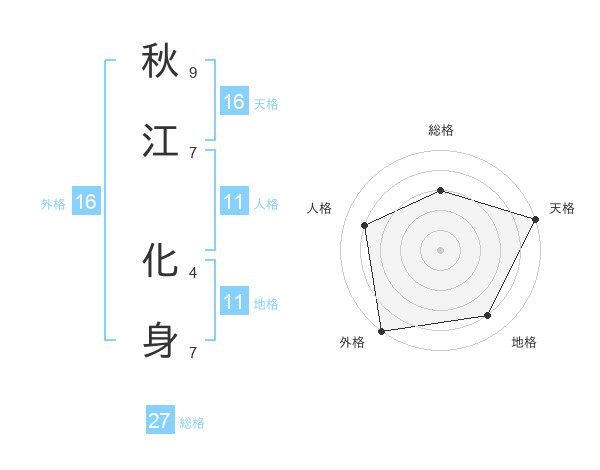 秋江 化身さんの外格は16画の5点!