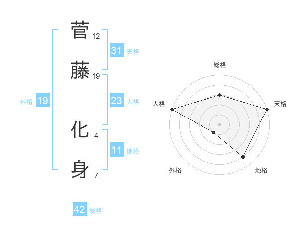 菅藤 化身さんの天格は31画の5点!