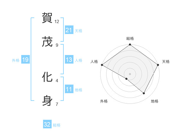 賀茂 化身さんの総格は32画の5点!