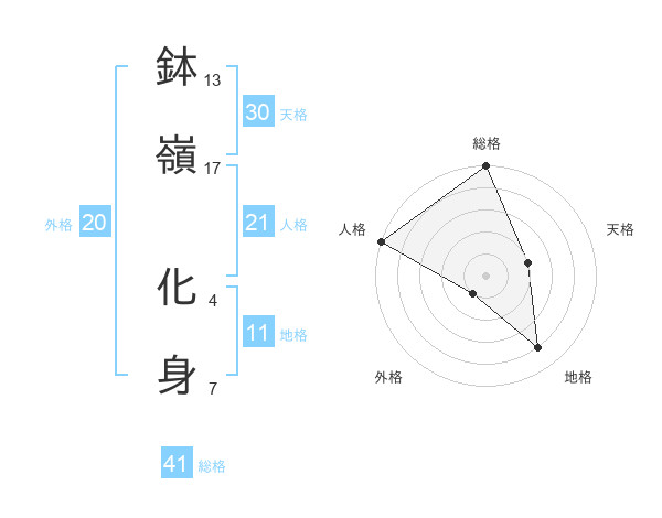 鉢嶺 化身さんを姓名の画数から五運を鑑定