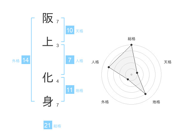 阪上 化身さんの総格は21画の5点!