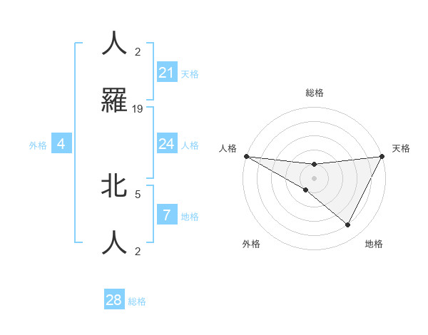 人羅 北人さんの天格は21画の5点!