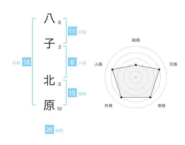 八子 北原さんの総格は26画の2点!