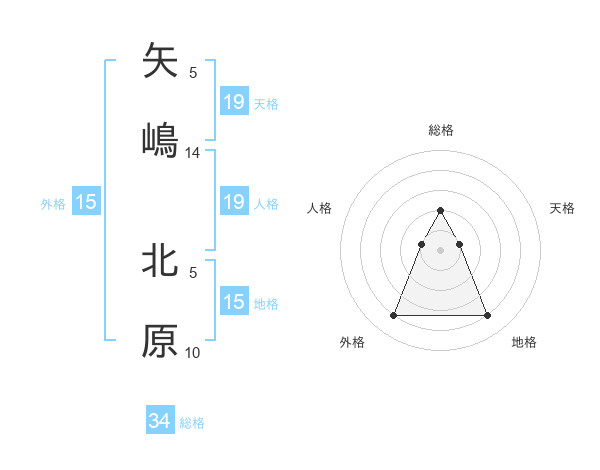 矢嶋 北原さんの地格は15画の4点!